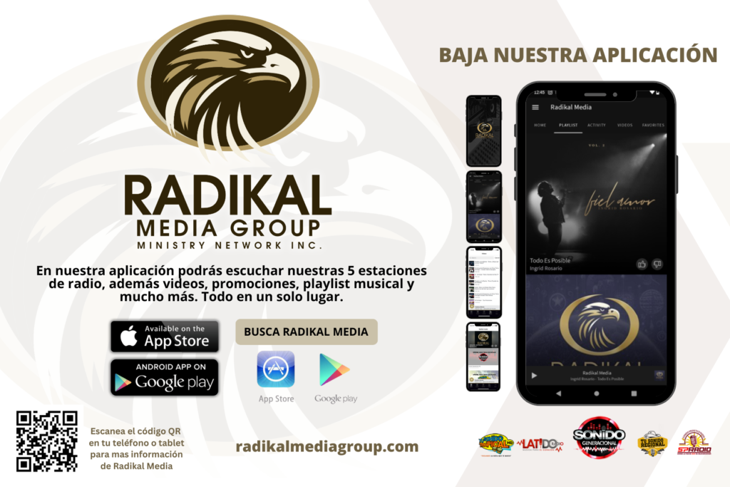 Somos la casa de las 5 estaciones de radio de Radikal Media Group, un espacio donde la música y el mensaje se unen para conectar con cada generación, cada cultura y cada corazón. A través de nuestras emisoras, ofrecemos una programación variada, diseñada para toda la familia, disponible en nuestra página web y en la aplicación RADIKAL MEDIA, en Google Play y App Store de Apple.